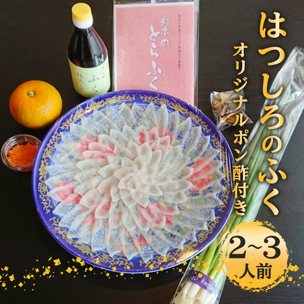 商品説明 名称 はつしろのふく(ふぐ刺しのみ) 2〜3人前 オリジナルポン酢付き 産地 岡垣町 内容量 ふぐ刺し:180g ふぐ皮:100g ひれ酒用ひれ:4枚 ポン酢:180ml もみじおろし:50g ねぎ:1束 箸:3膳 橙(かぼす):1個 原材料名 ふく、皮、ひれ:とらふぐ(福岡県産) ポン酢(オリジナルブレンド):橙(かぼす)果汁、柑橘酢、酸味料、アミノ酸等、醸造酢、果糖ぶどう糖 もみじおろし:大根、唐辛子(福岡県産)、葱、橙 賞味期限 加工日より5日 発送方法 冷蔵 保存方法 到着後直ぐに冷蔵で保管してください。