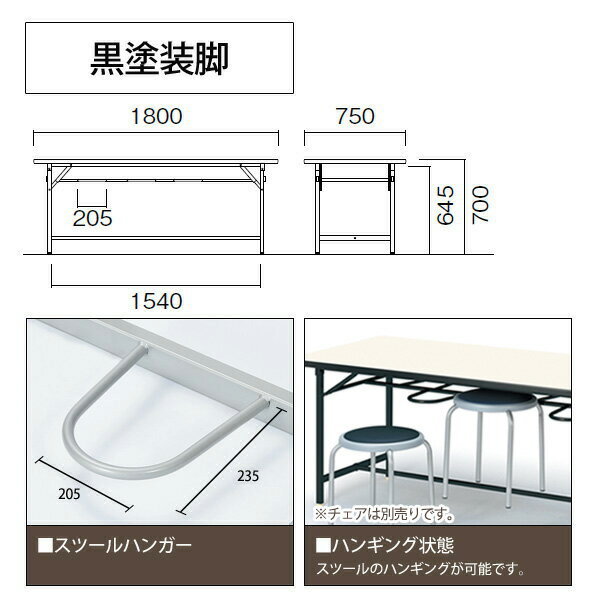 ------------------------------------------------------------------------ サイズ横幅(W)x奥行(D)X高さ(H) mm 幅1800x奥行750x高さ700 共通仕様 ●天板/表面材:メラミン化粧板 エッジ:ソフトエッジ巻 28mm厚 ●脚部/スチールパイプ(□26) 焼付塗装(ブラック) アジャスター付 カラー 天板:アイボリー 脚部:ブラック タイプ 6人用 組立について 組立式 納期について おおよその納期は、約15〜18日後の発送予定となります。