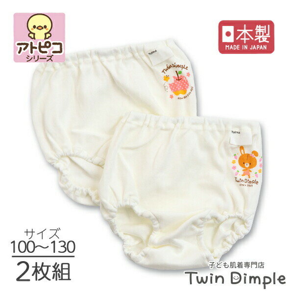 【日本製】アトピコショーツ(うさぎ・りんご柄)2枚組 《外縫い》 100/110/120/130 日本製 キッズ パンツ 女の子 オーガニックコットン パンツ アトピー敏感肌 メール便 OK